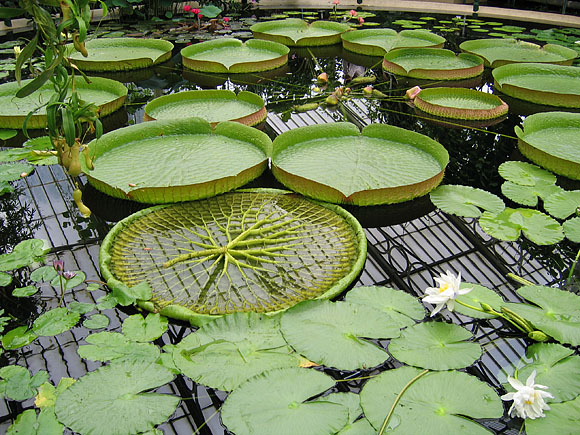 Hier ist mal zu sehen, wie diese großen Seerosenblätter von unten strukturiert sind.